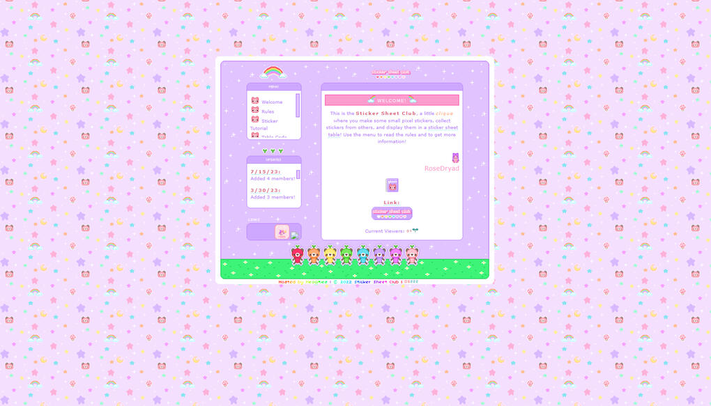 i made a pixel clique called the 'sticker sheet club' on neocities.you make small pixel stickers, collect stickers from others, and display them in sticker sheet tables on your own site.just sign the guest book if you want to be added to the members list so others can easily find your stickers.